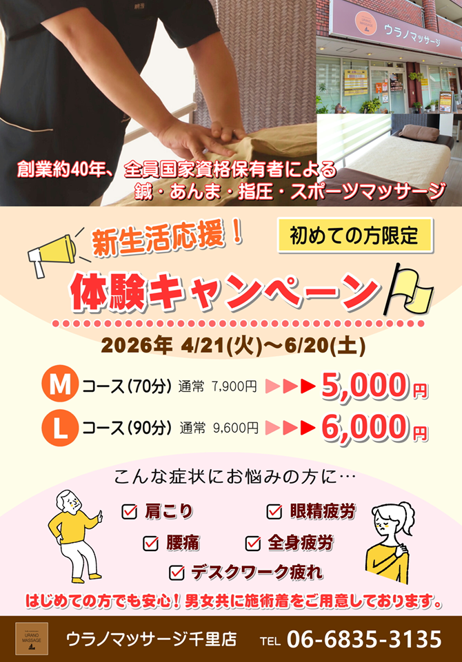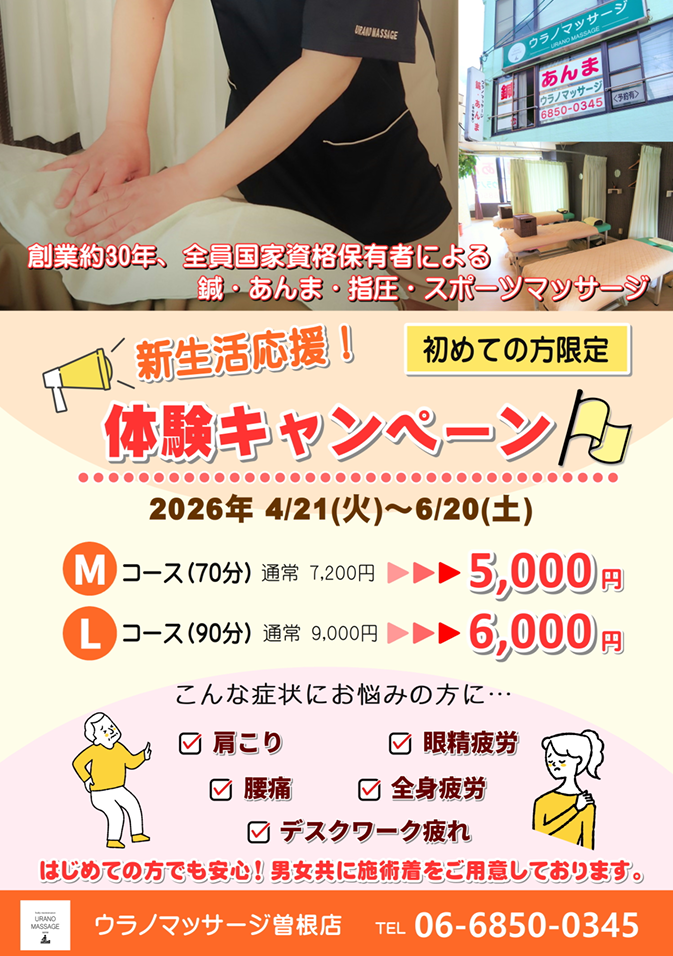 新生活が始まり慣れない環境や生活リズムの変化で、肩こりや腰痛、デスクワークによる疲れを感じている方も多いのではないでしょうか。